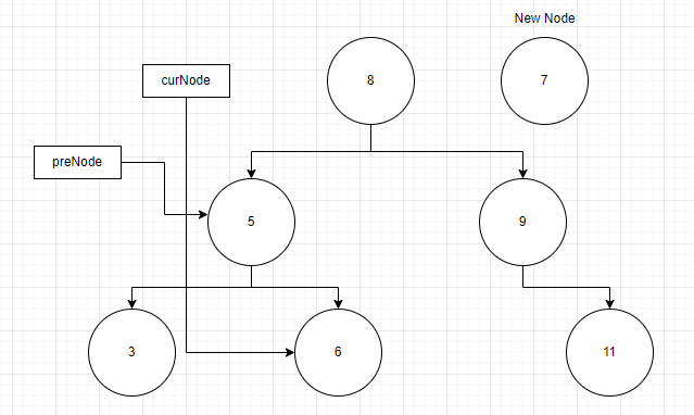 // 반복문이 종료되면 curNode는 새 노드를 삽입할 자리를 찾게 됨