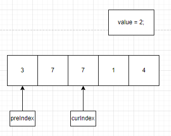 이 상태에서 preIndex = 0 이고 2 < 3 이므로 while 문 내부 코드가 한번 더 실행 됩니다.