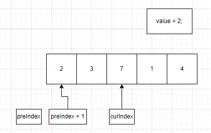 while(preIndex >= 0 && value < array[preIndex])