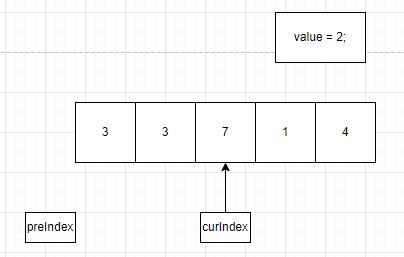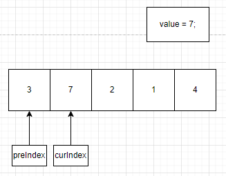 preIndex = 0 이고, value = 7 > array[preIndex] = 3 이므로 while 문 내부로 들어갈 수 없습니다.